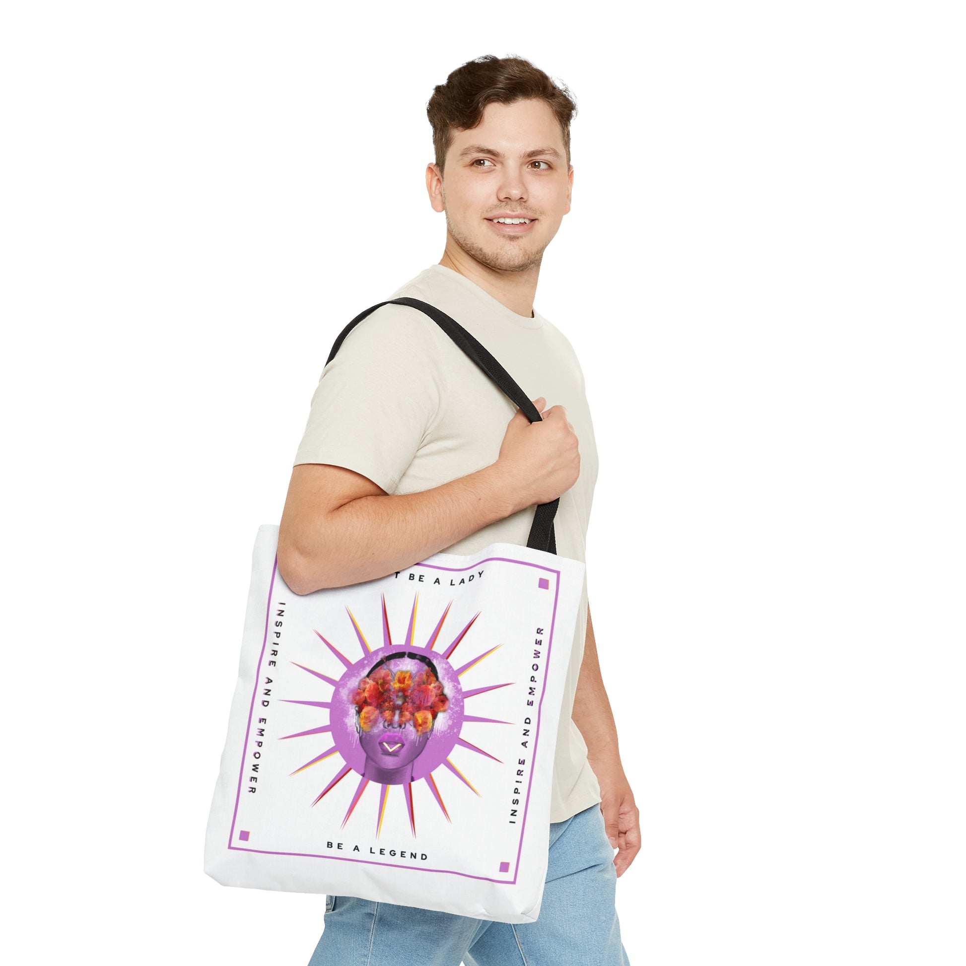 Specs: Tote Bag 100% Polyester Black Cotton Handles Black Lining Size tolerance 0.75” (1.9 cm)