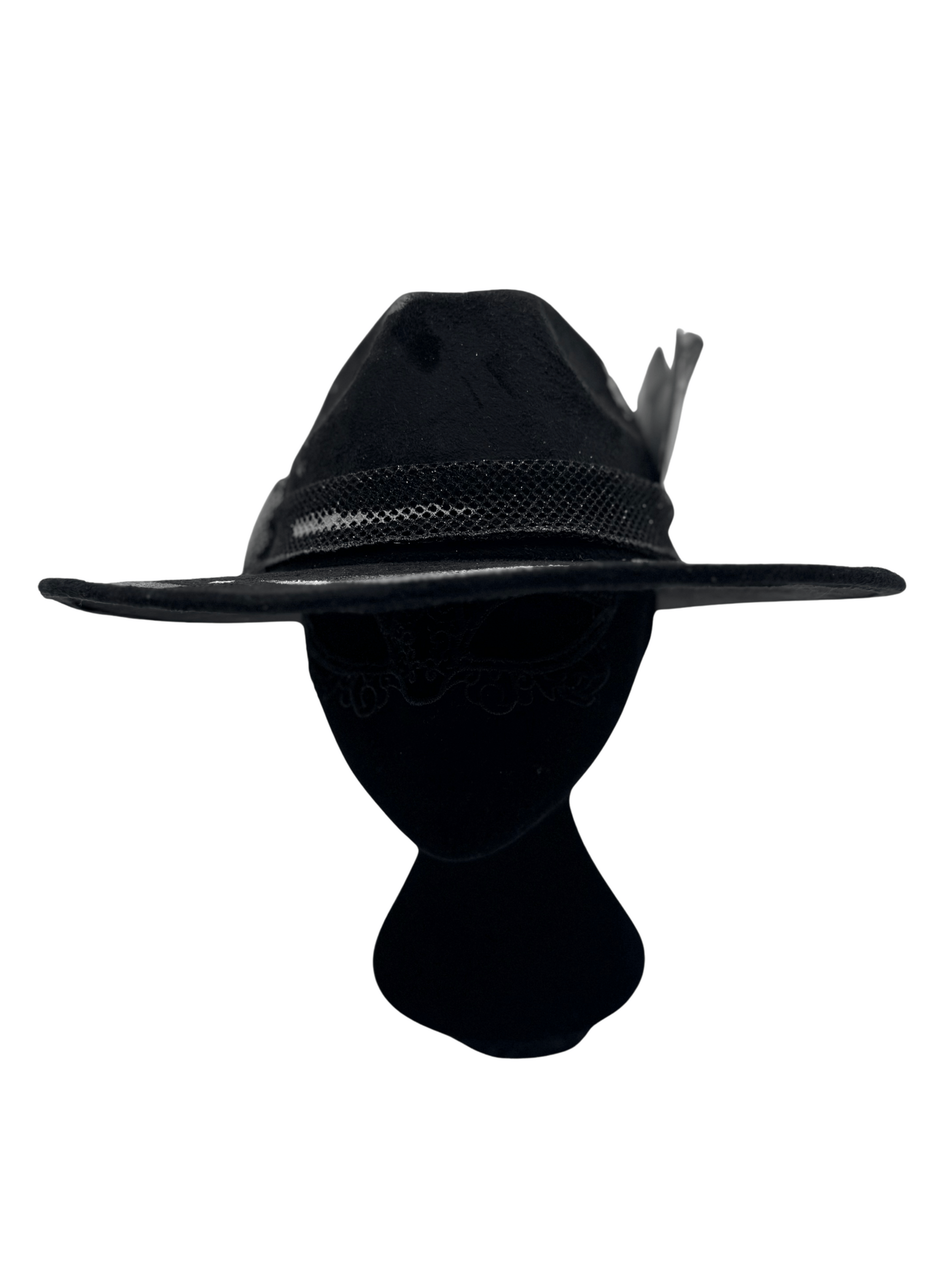 “Mystic Eclipse” – All-Black Vegan Suede Hat with Silver Splatter & Mystic Gaze Cards