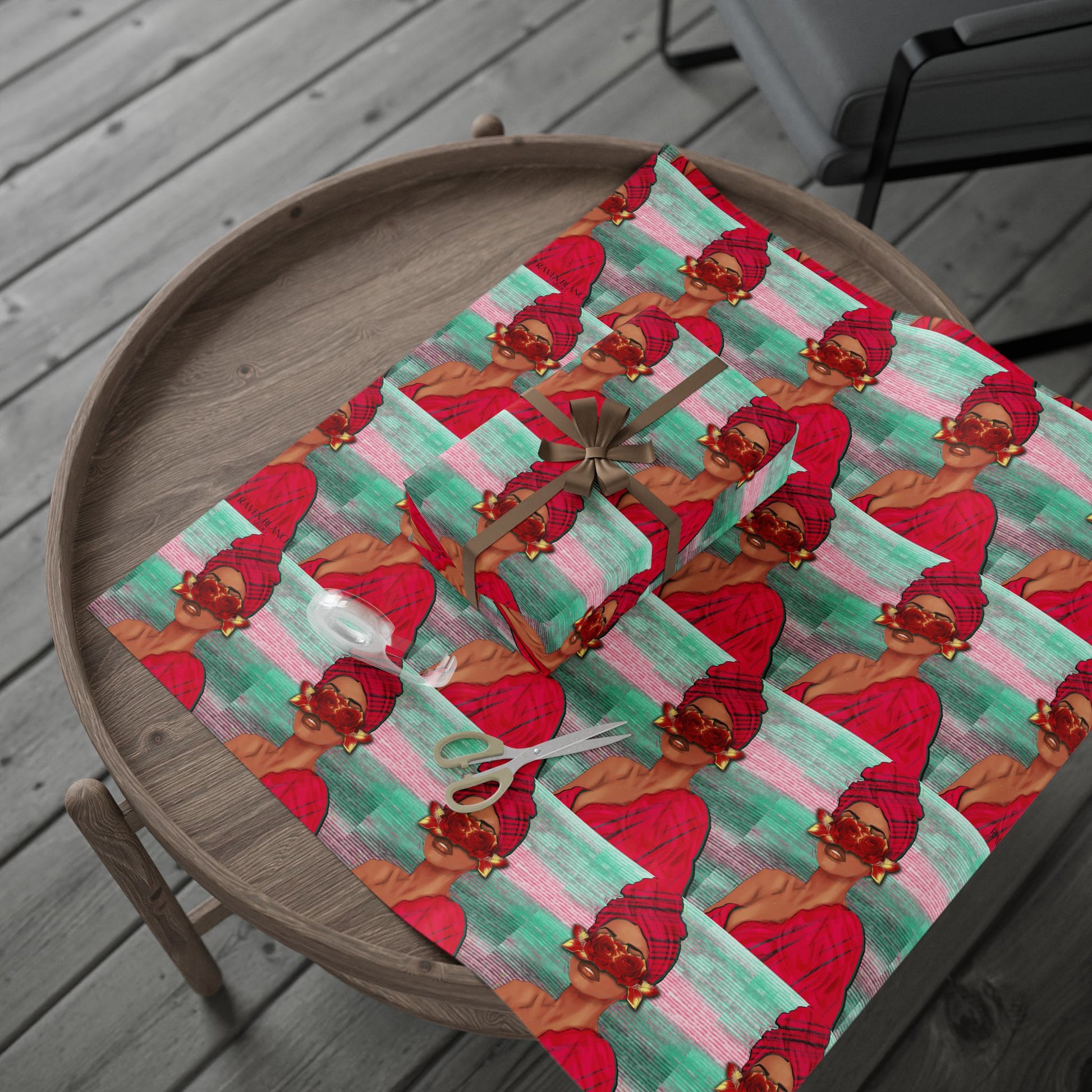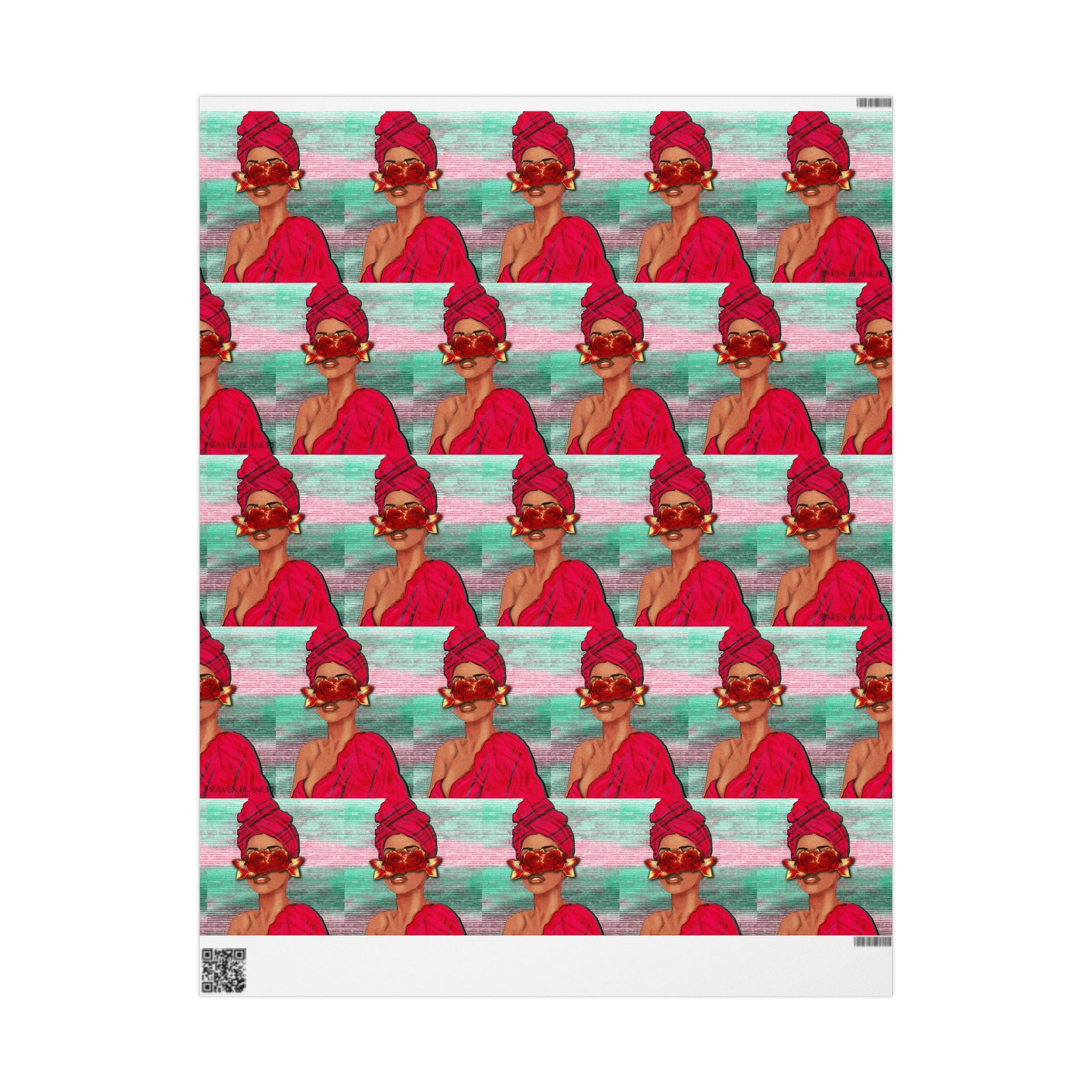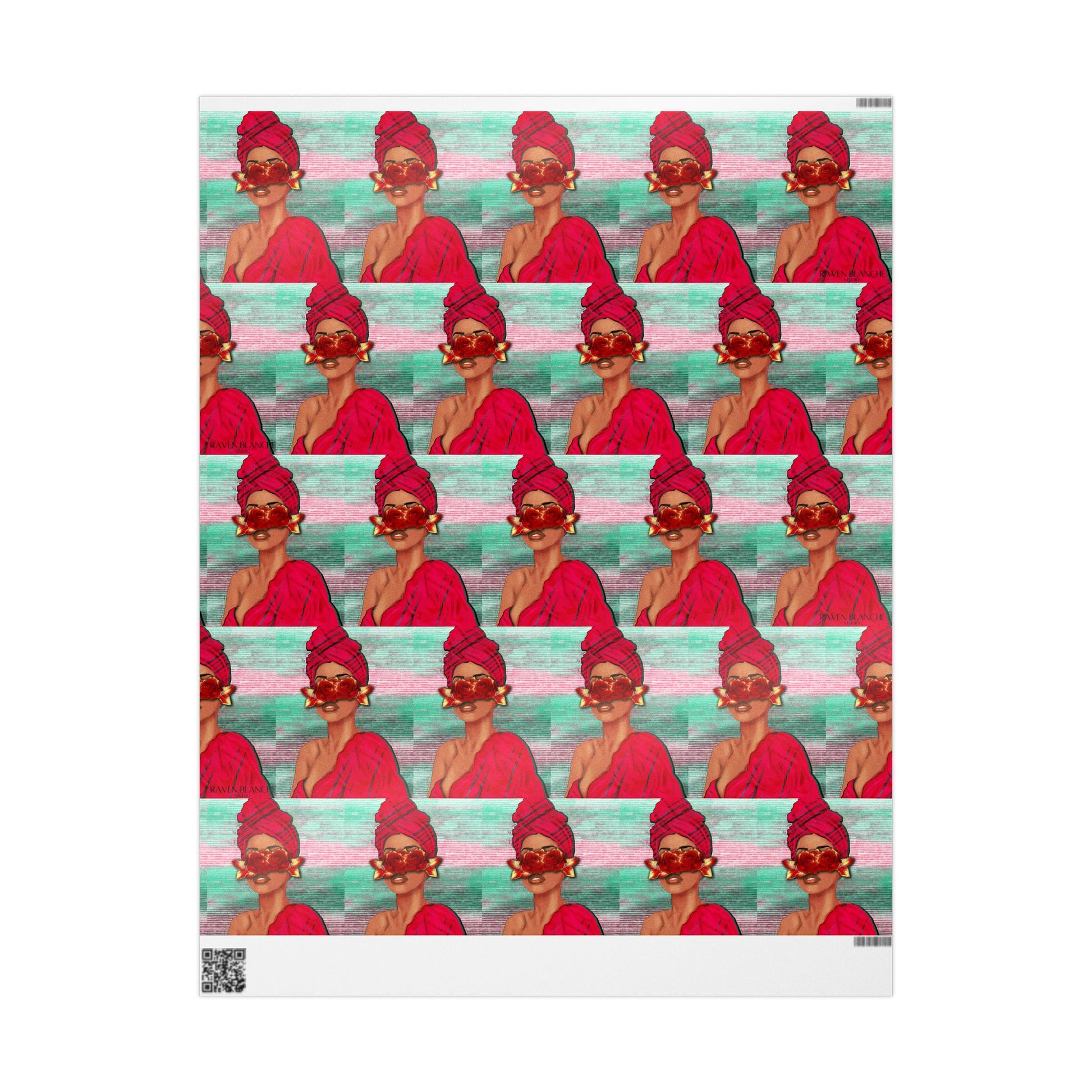 SeeMe. This beautiful African American woman wears red roses on her face, her skin is flawlessly drawn and her body is spectacularly presented on custom wrapping paper.